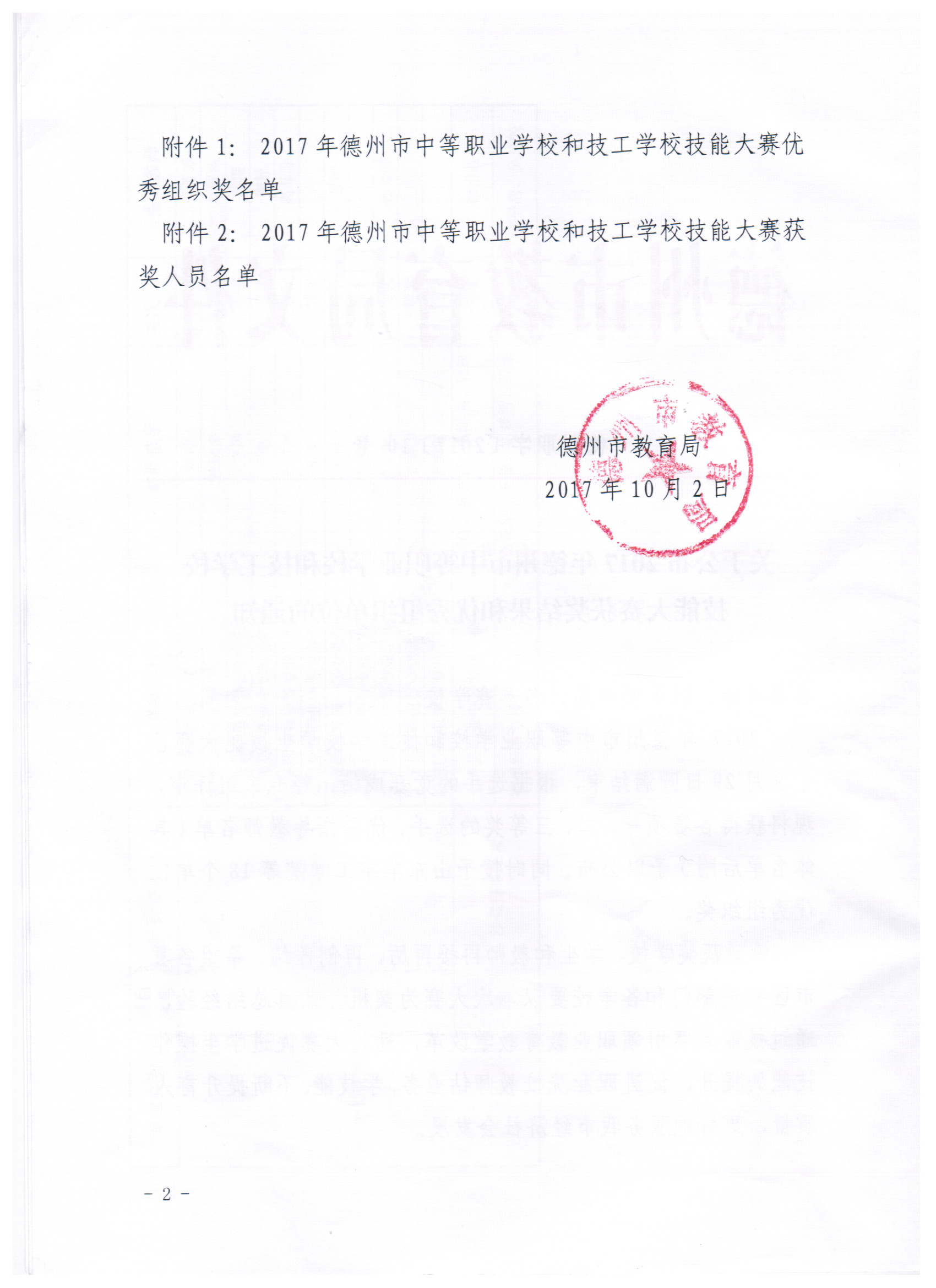 關于公布德州市中等職業學校和技工學校技能大賽獲獎結果和優秀組織單位的通知