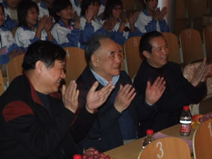 何光遠部長在學校禮堂高興地觀看文藝演出