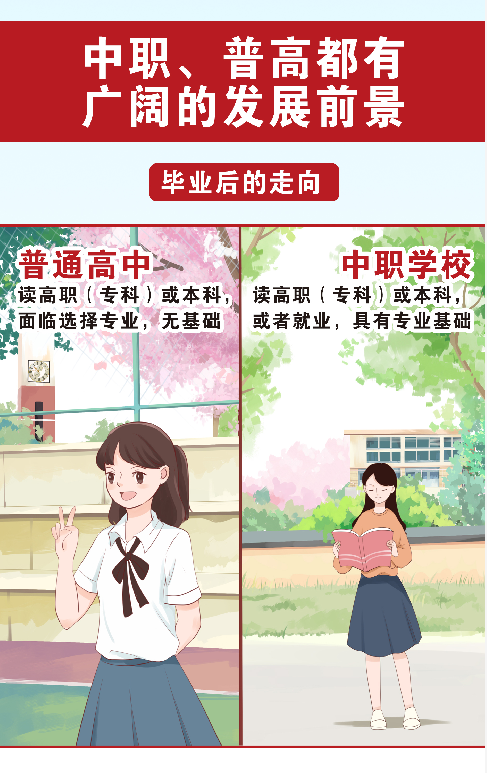 只要你愿意繼續學習、只要你有著遠大的理想,無論是讀普通高中還是讀中職學校,都會有光明的前程!真誠地祝福你,希望你抓住機遇,夯實基礎,努力為自己的夢想而奮斗!