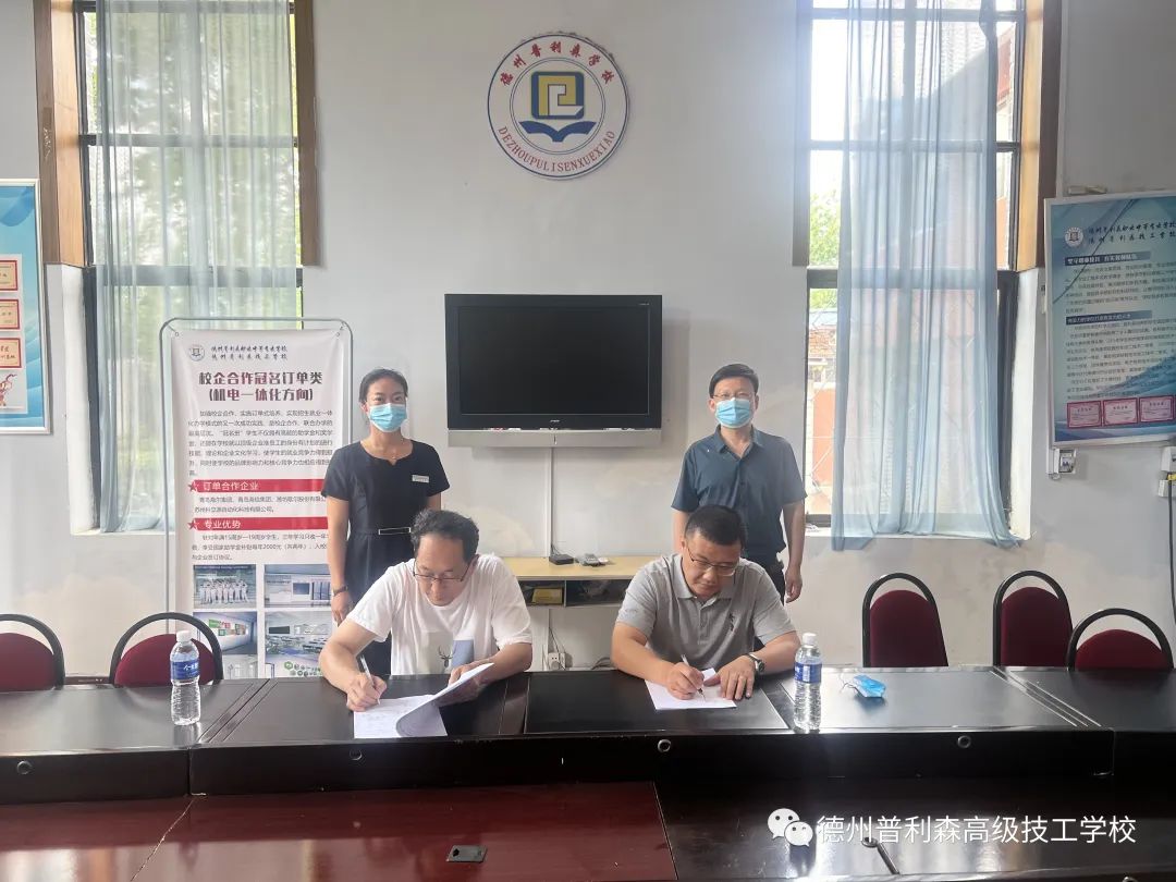 德州普利森職業中等專業學校副校長王向勇、德州職業技術學院招生就業處冀康建處長簽署了中高職貫通培養協議