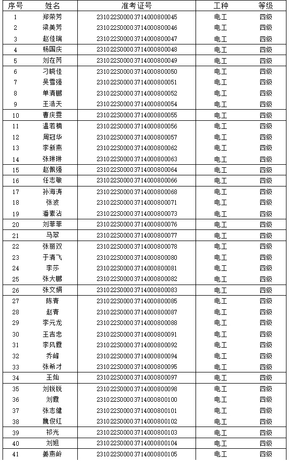 附件1:擬認(rèn)定為社會培訓(xùn)組織評價電工四級合格名單