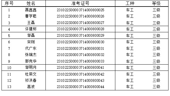 附件2:擬認(rèn)定為社會培訓(xùn)組織評價車工三級合格名單