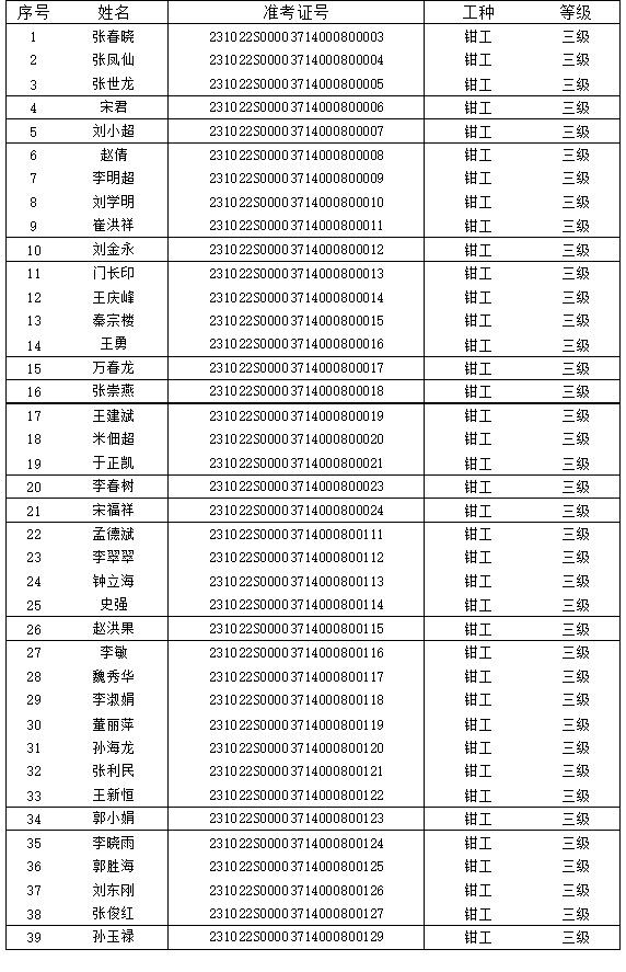 附件3:擬認(rèn)定為社會培訓(xùn)組織評價鉗工三級合格名單
