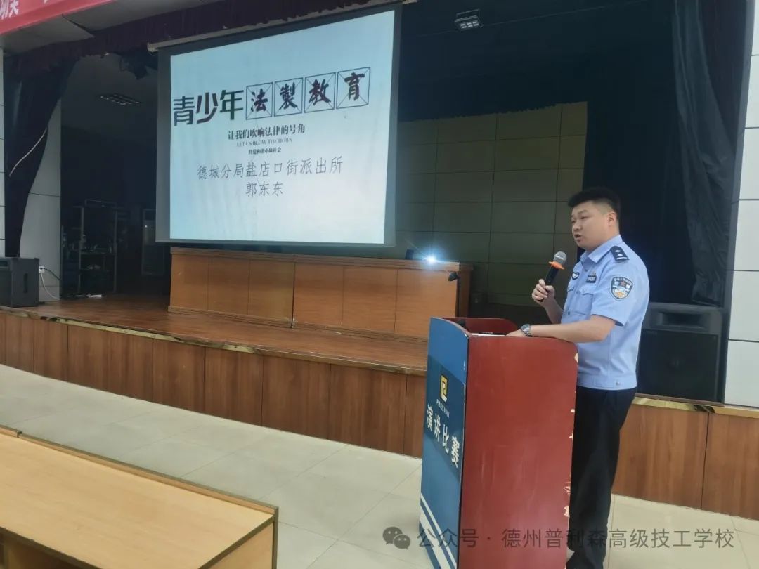 為進一步增強青少年法律意識和法治觀念,提高青少年安全防范意識和自我保護能力,5月28日,德城分局鹽店口街派出所走進德州普利森高級技工學校開展“青少年法制教育”主題宣講活動。